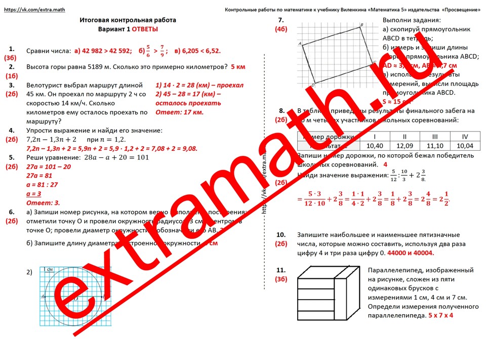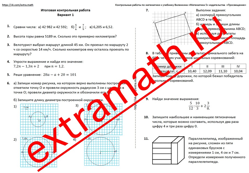 5 класс Итоговая контрольная работа / Входная контрольная работа 6 класс