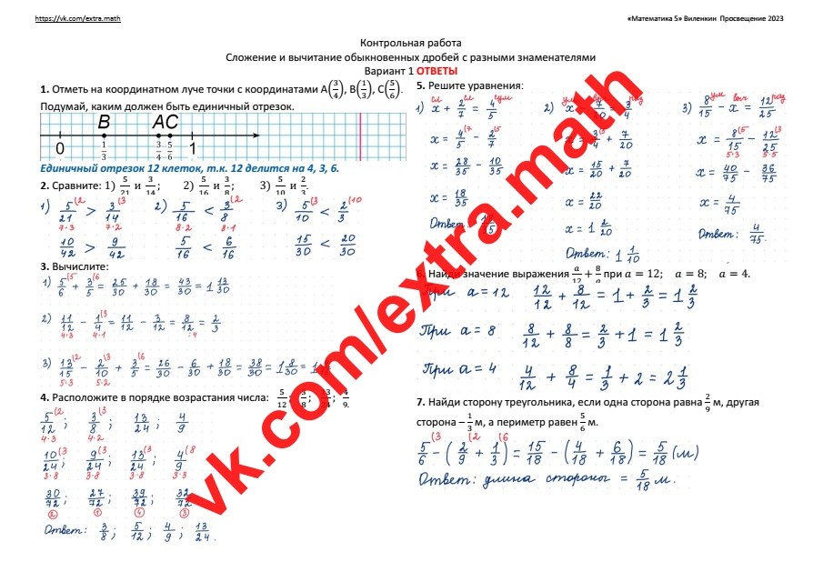 36. Сравнение, сложение и вычитание дробей с разными знаменателями.