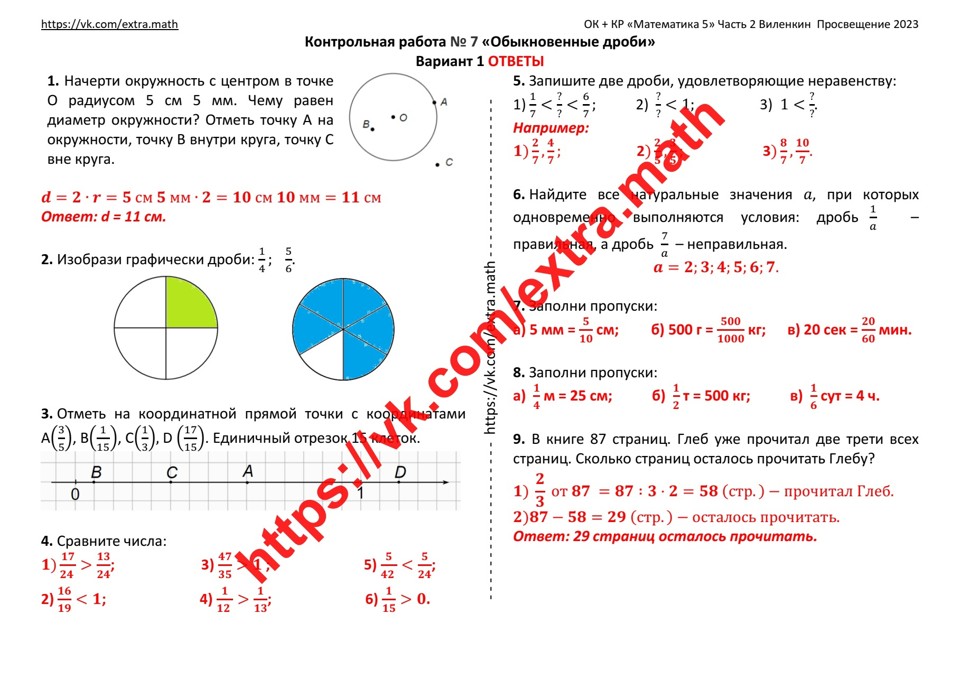 🆗5 класс Опорные конспекты + Самостоятельные работы + Контрольная работа "Обыкновенные дроби"