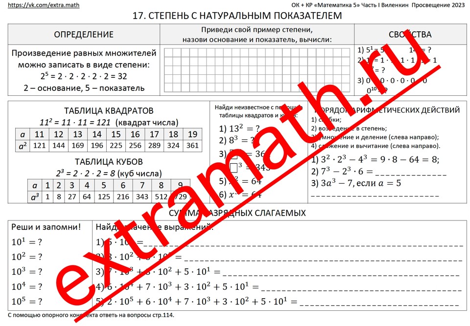 🔹3 опорных конспекта к п.17-19 учебника "Математика 5" Виленкин 2023;