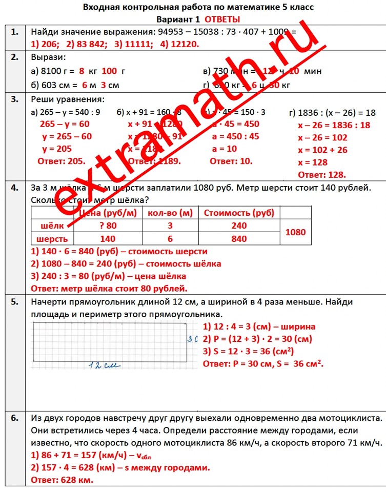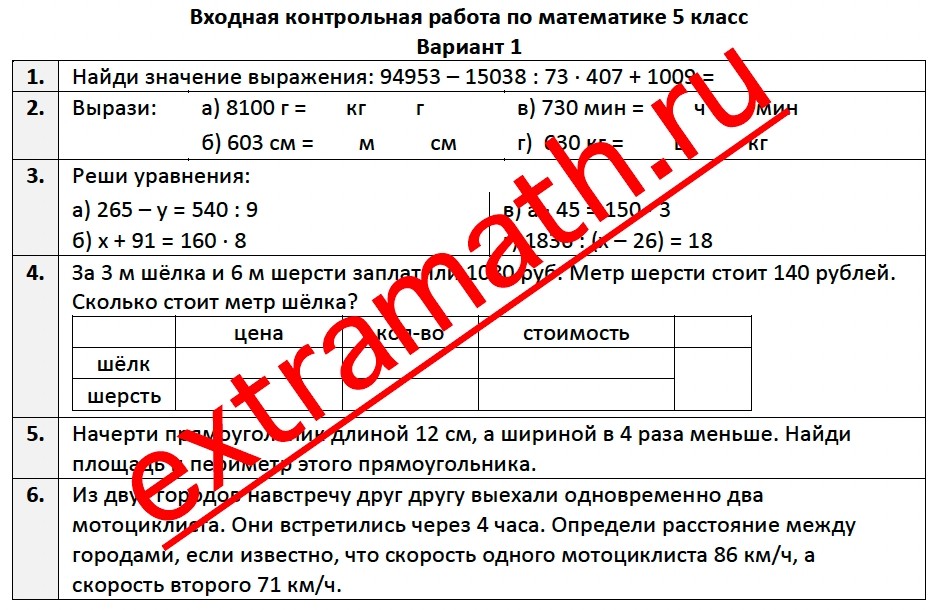 5 класс Входная контрольная работа / Итоговая контрольная работа 4 класс
