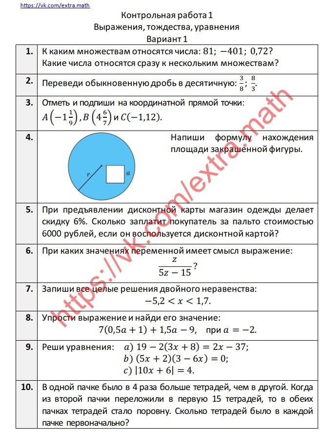 🔹 контрольную работу по теме в 6 вариантах с полным решением.