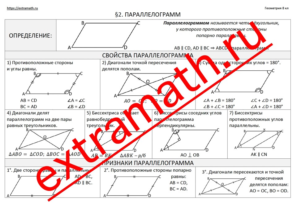 🆗ОПОРНЫЕ КОНСПЕКТЫ «Геометрия 8 класс»