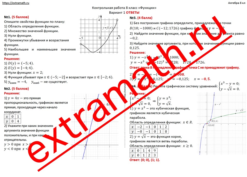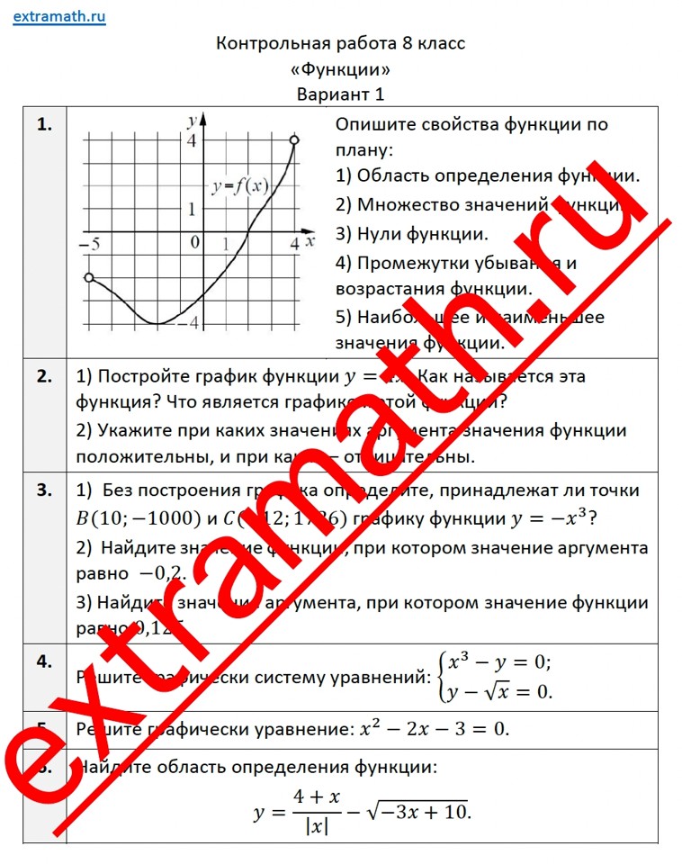 🆗8 класс Контрольная работа "Функции"