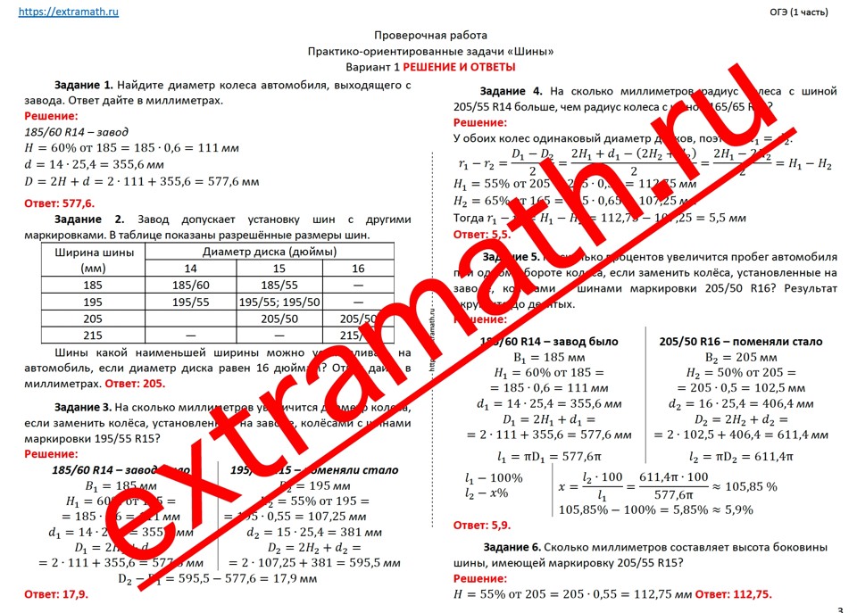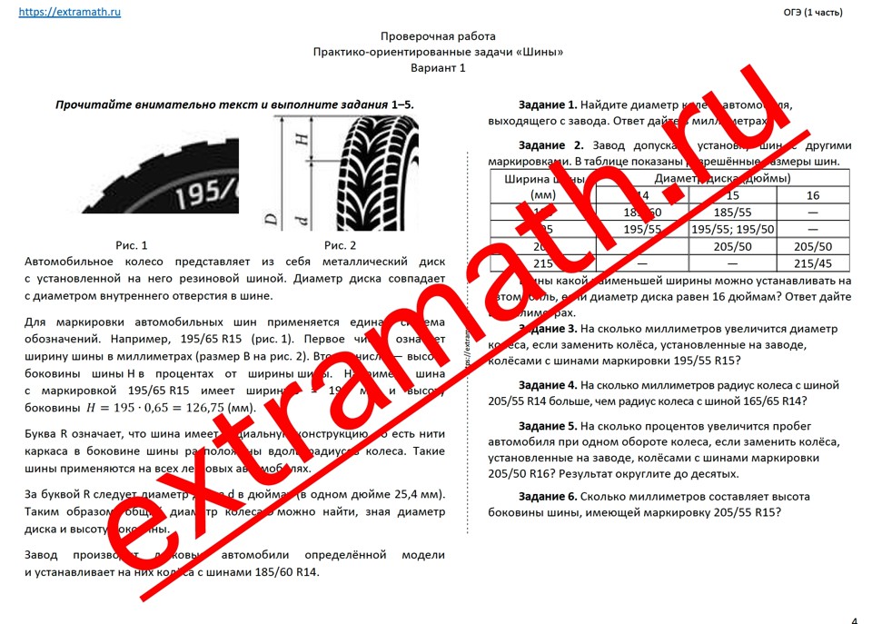 33.🆗ОГЭ (1 часть) Проверочная работа "Практико-ориентированные задачи Шины"
