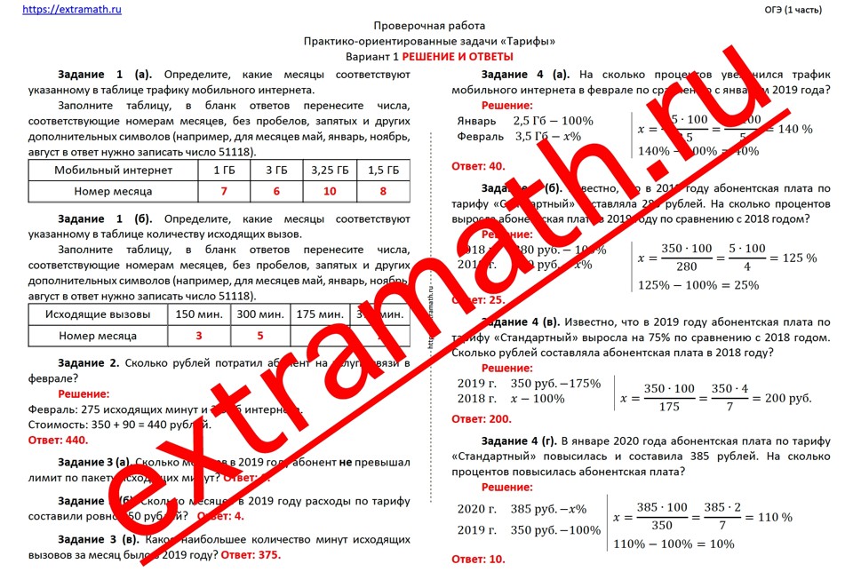 31.🆗 ОГЭ (1 часть) Проверочная работа "Практико-ориентированные задачи Тарифы"