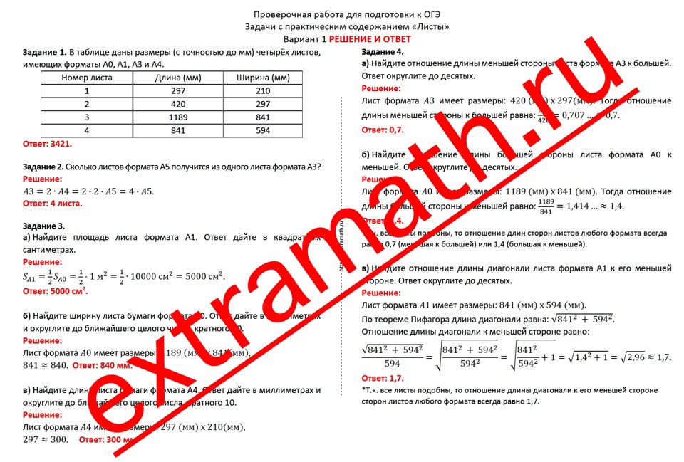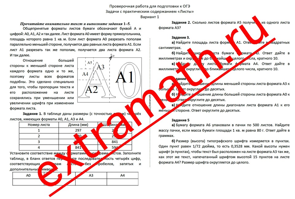 28.🆗ОГЭ (1 часть) Проверочная работа "Практико-ориентированные задачи Листы"