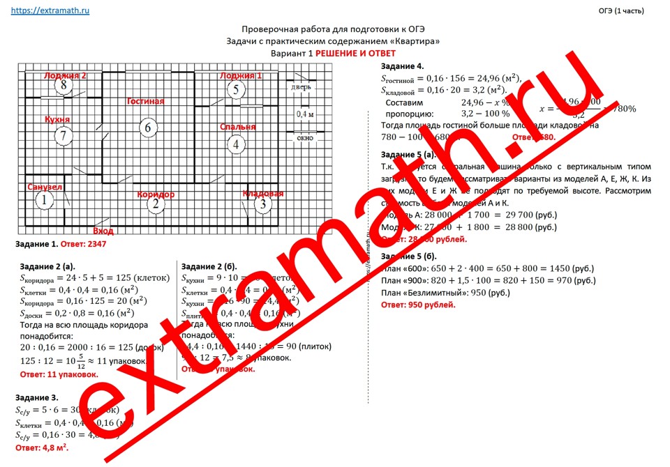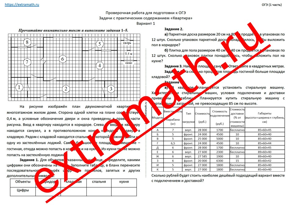 27.🆗ОГЭ (1 часть) Проверочная работа "Практико-ориентированные задачи Квартира"