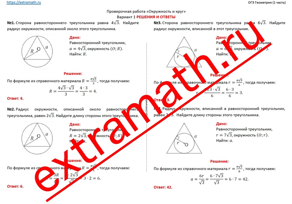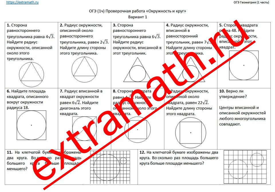 26.🆗 ОГЭ (1 часть) Опорные конспекты + Проверочная работа "Окружность и круг"