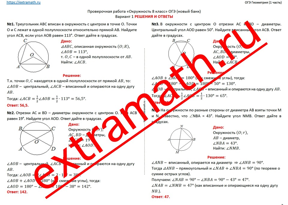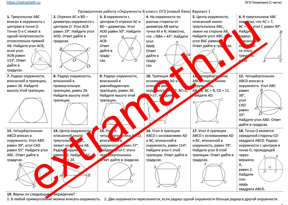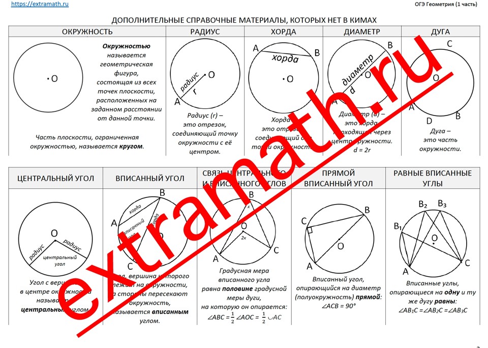 25.🆗ОГЭ (1 часть) Опорные конспекты + Проверочная работа "Окружность 8 класс"