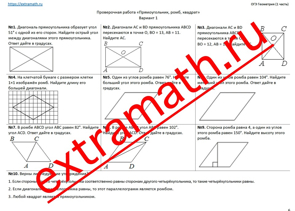 20.🆗 ОГЭ (1 часть) Опорные конспекты + Проверочная работа "Прямоугольник. Ромб. Квадрат"