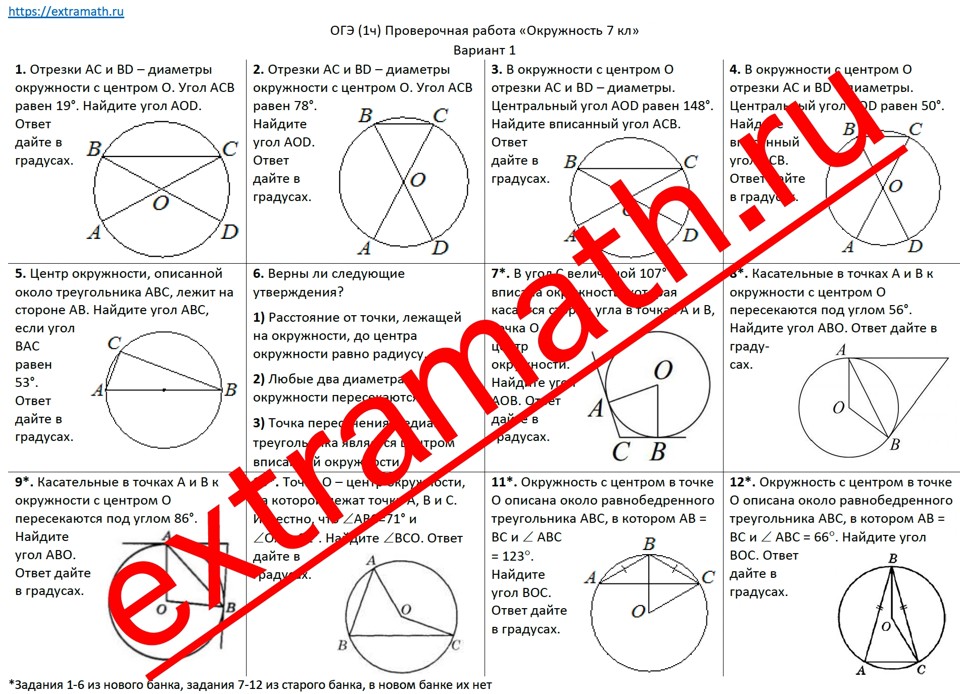 17.🆗ОГЭ (1 часть) Опорные конспекты + Проверочная работа "Окружность 7 кл"