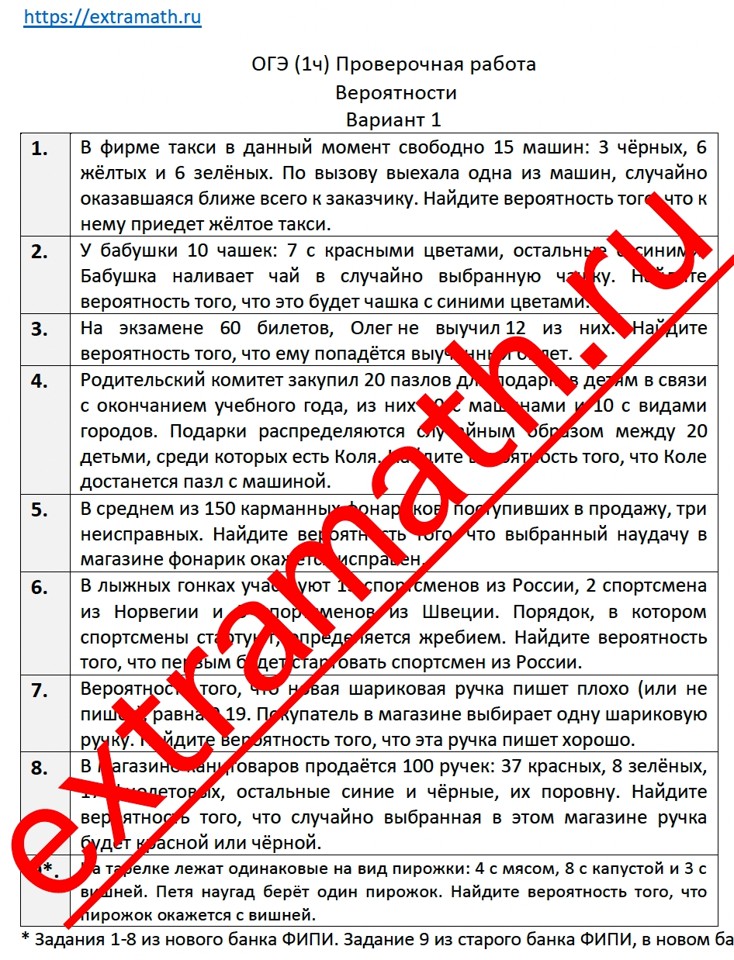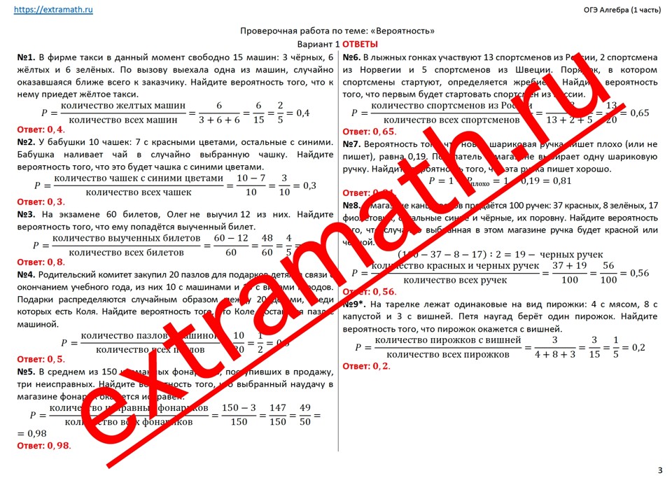 .🆗ОГЭ (1 часть) Презентация + Проверочная работа "Вероятности"