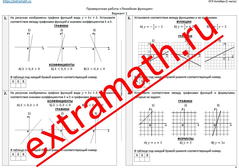 4.🆗 ОГЭ (1 часть) Опорные конспекты + Проверочная работа "Линейная функция"