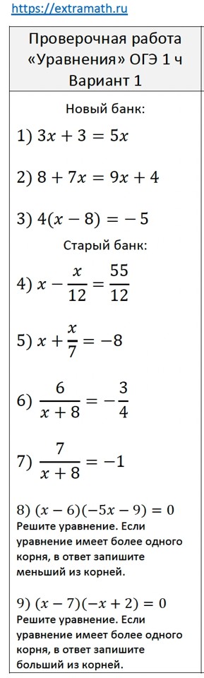 3.🆗ОГЭ (1 часть) Опорные конспекты + Проверочная работа "Линейные уравнения"