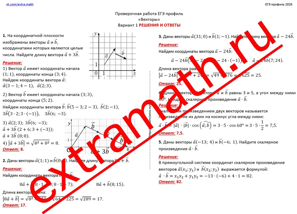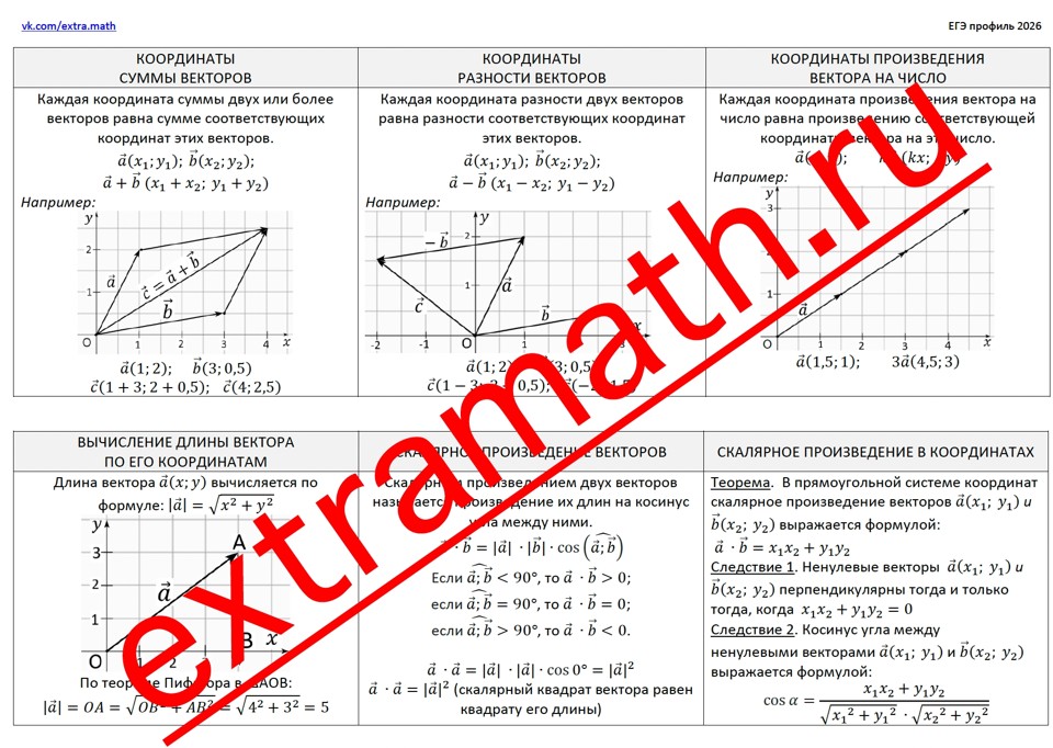 19.🆗ЕГЭ профиль (1 часть) Опорный конспект + проверочная работа «Векторы»