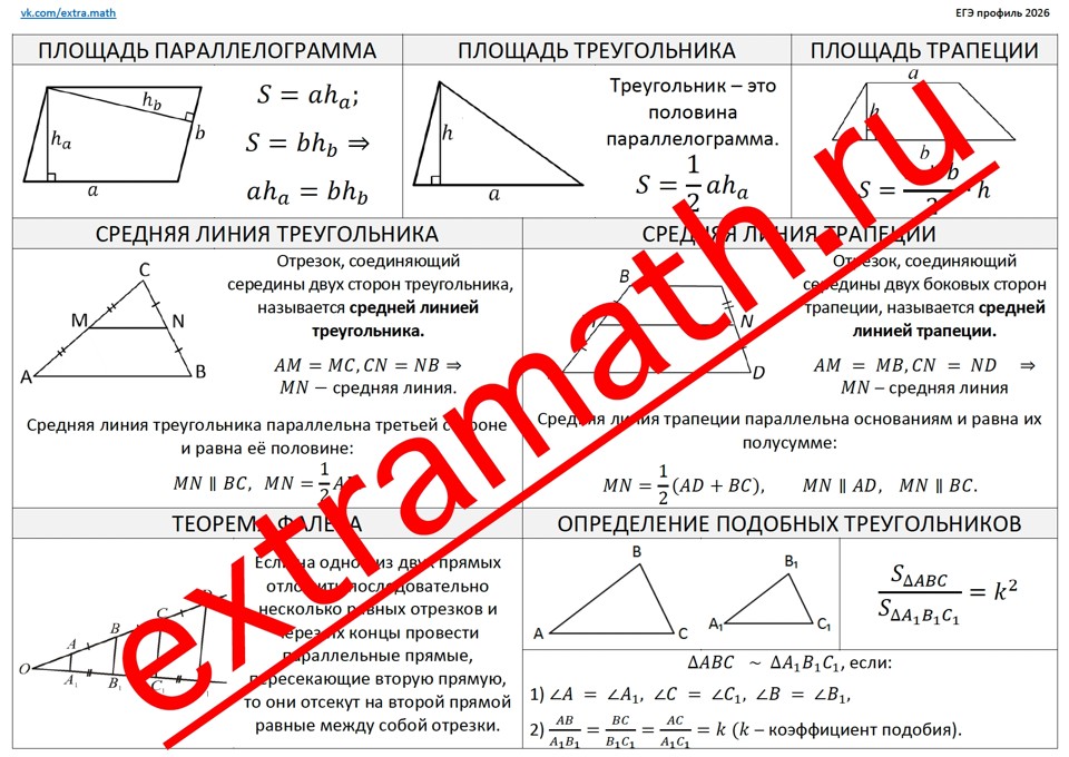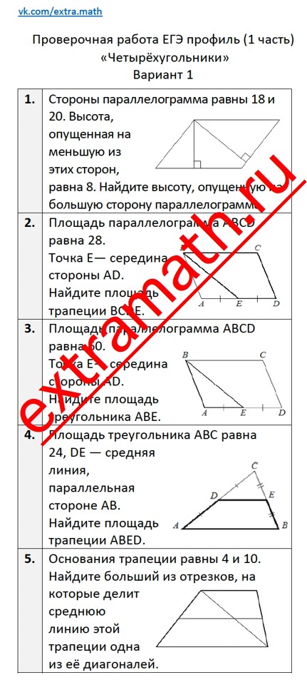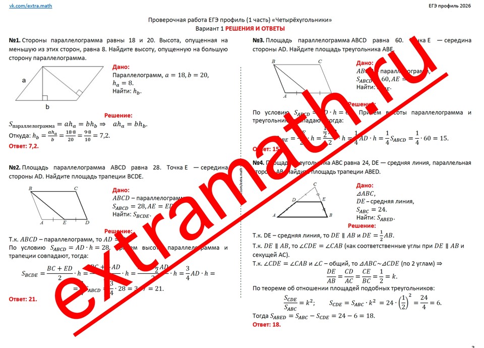 17.🆗ЕГЭ профиль 1 часть Опорный конспект + Проверочная работа "Четырехугольники"