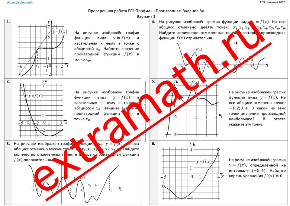 13.🆗ЕГЭ профиль (1 часть) Проверочная работа "Производная. Задание 8"