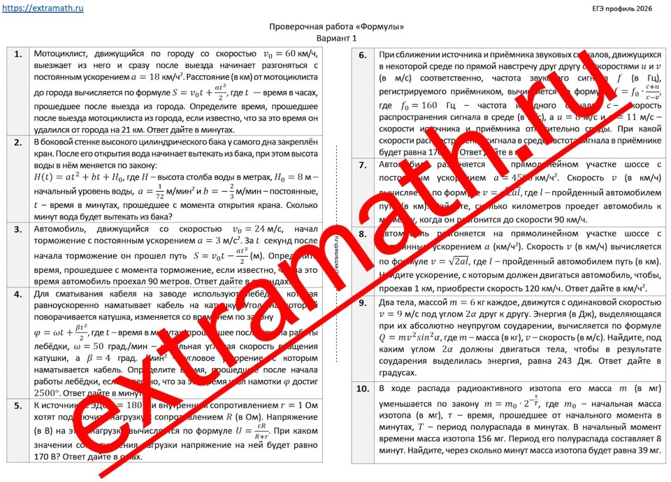 12.🆗ЕГЭ профиль (1 часть) Проверочная работа "Формулы"