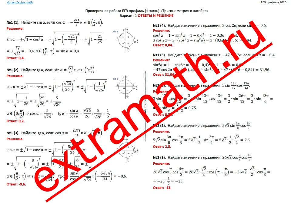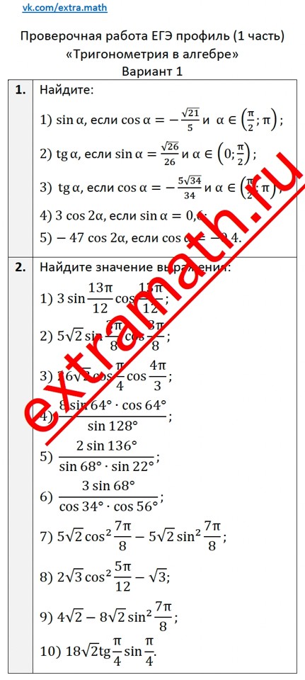 11.🆗ЕГЭ профиль (1 часть) Проверочная работа "Тригонометрия в алгебре"