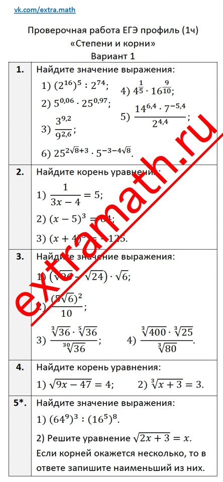 7.🆗ЕГЭ профиль (1 часть) Проверочная работа "Степени и корни"