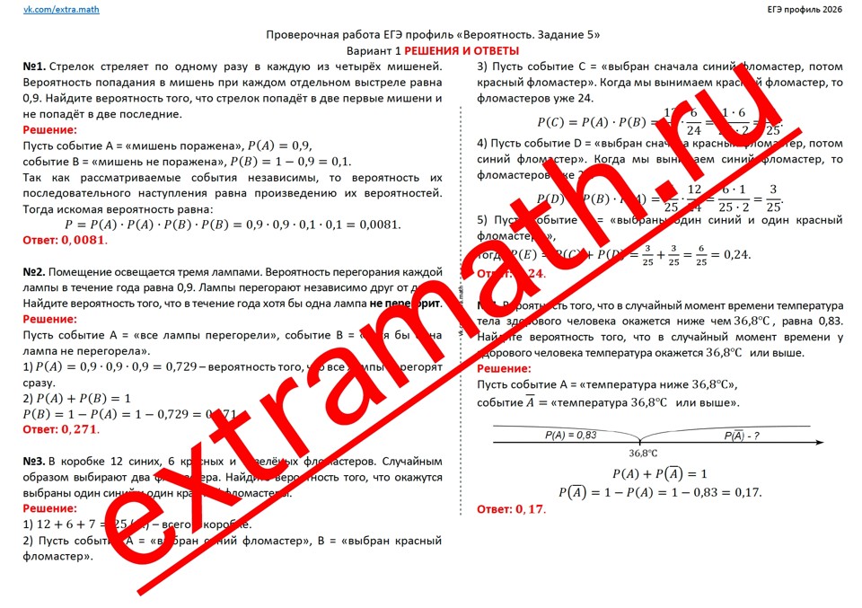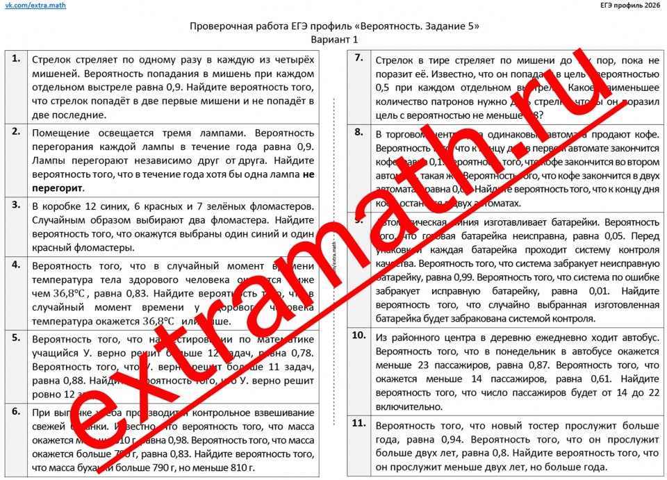 6.🆗ЕГЭ профиль (1 часть) Проверочная работа «Вероятность. Задание 5»