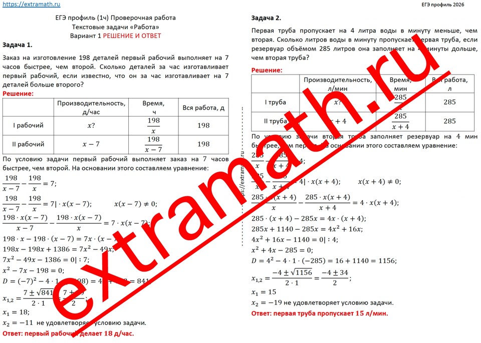 4.🆗ЕГЭ профиль (1 часть) Проверочная работа "Текстовые задачи "Работа""