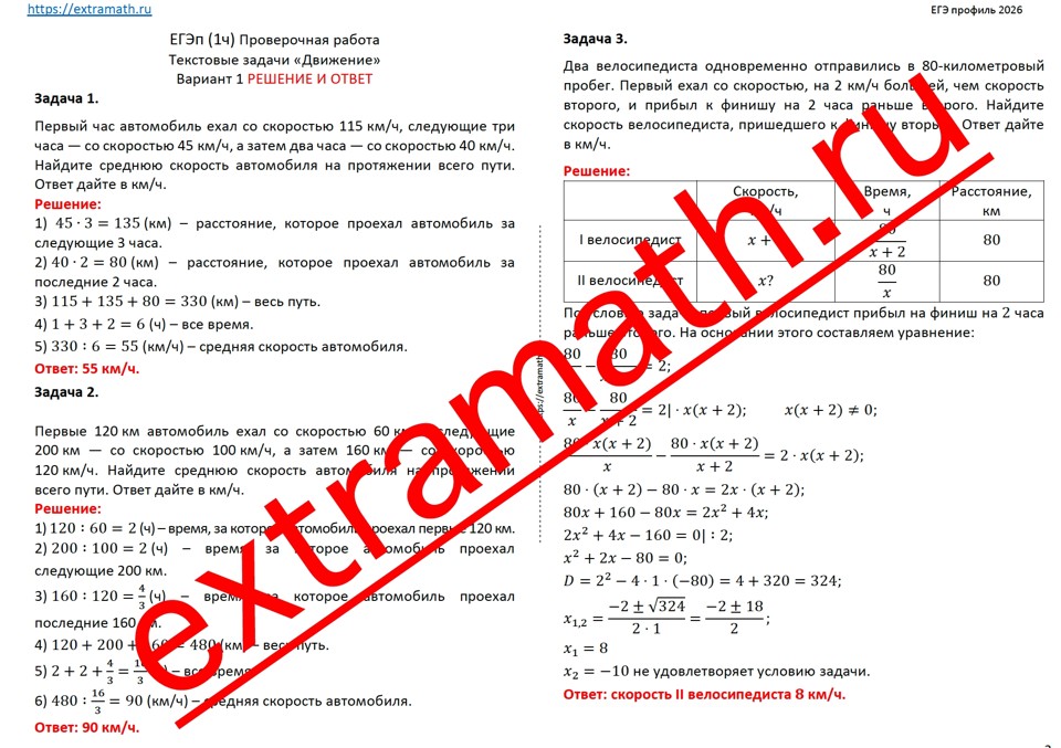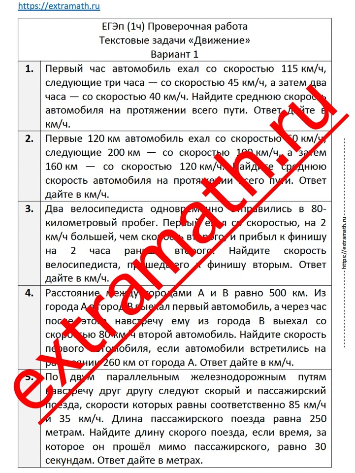 2.🆗ЕГЭ профиль (1 часть) Проверочная работа "Текстовые задачи "Движение""