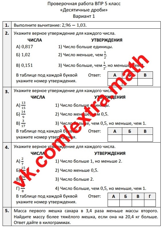 11.🆗ВПР 5 класс Проверочная работа "Десятичные дроби"