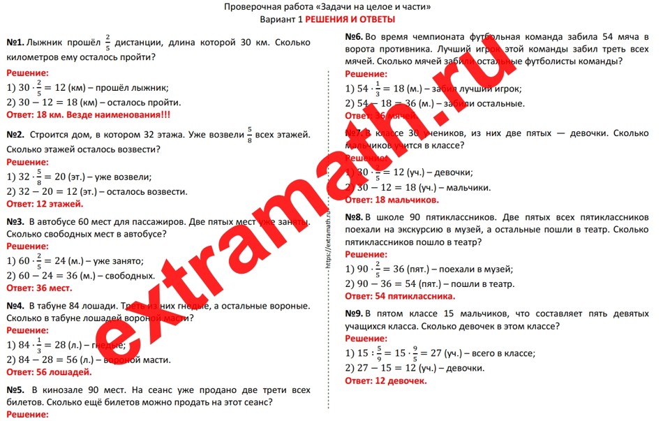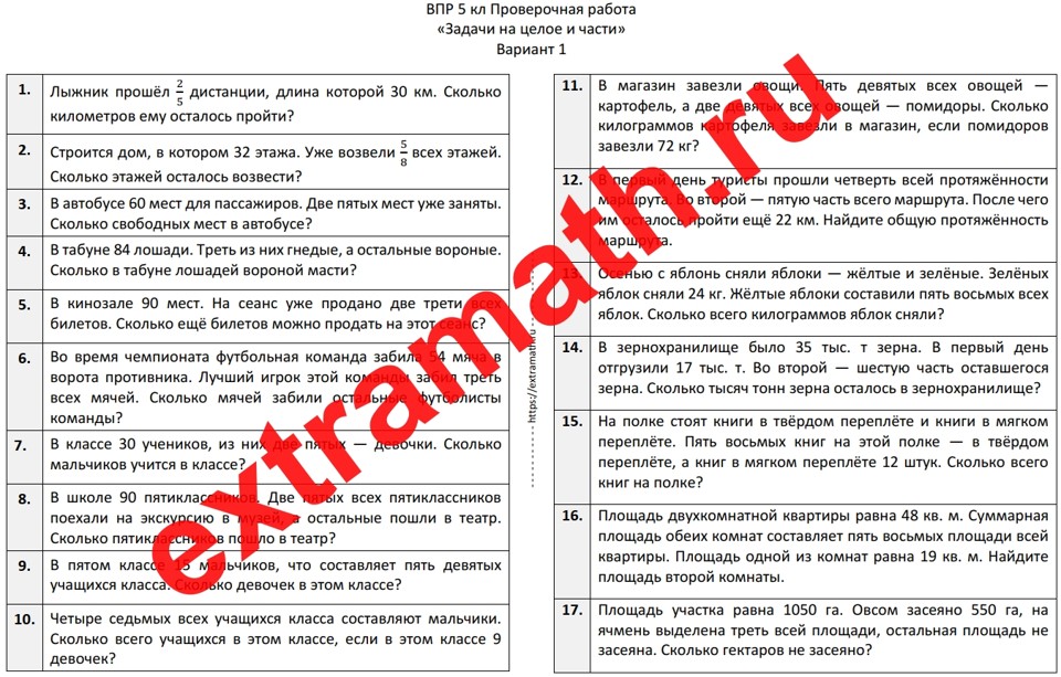 10.🆗ВПР 5 класс Проверочная работа "Задачи на целое и части"