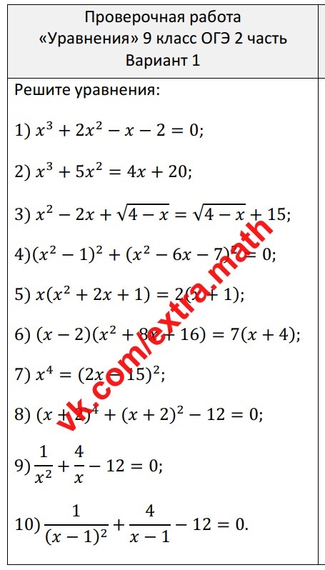 3.🆗Проверочная работа "Уравнения" (9 класс, целые уравнения, уравнения сводящиеся к квадратным, дробно-рациональные уравнения)