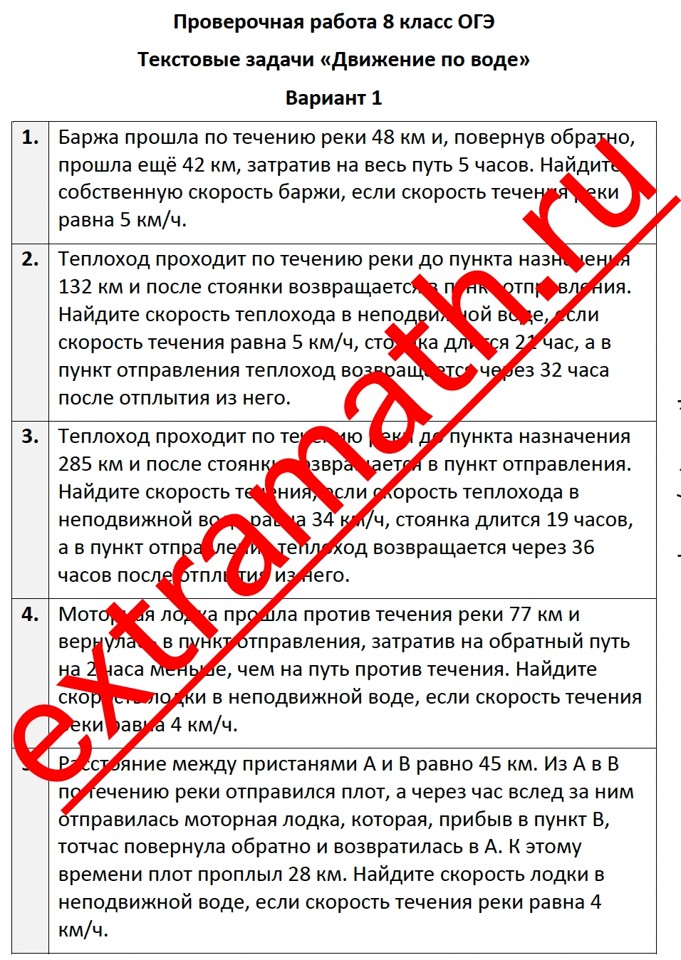 3.🆗Проверочная работа "Текстовые задачи на составление дробно-рациональных уравнений "Движение по воде""