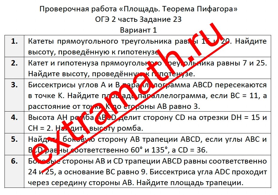 2.🆗Проверочная работа "Площадь. Теорема Пифагора (8 кл)"