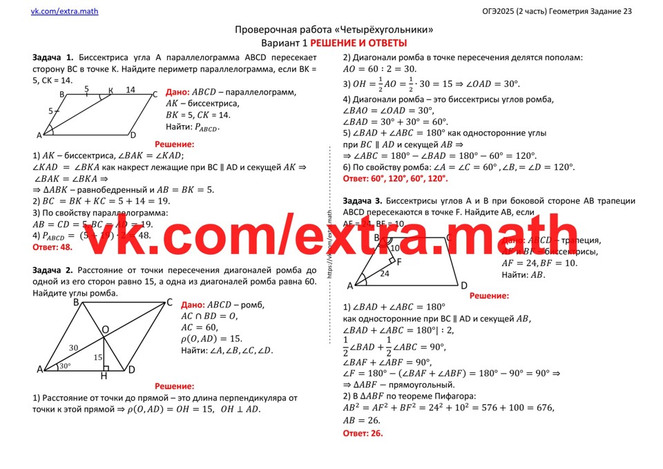 🆗ОГЭ (2 часть) Проверочные работы "Задание 23. Геометрические задачи на вычисление"