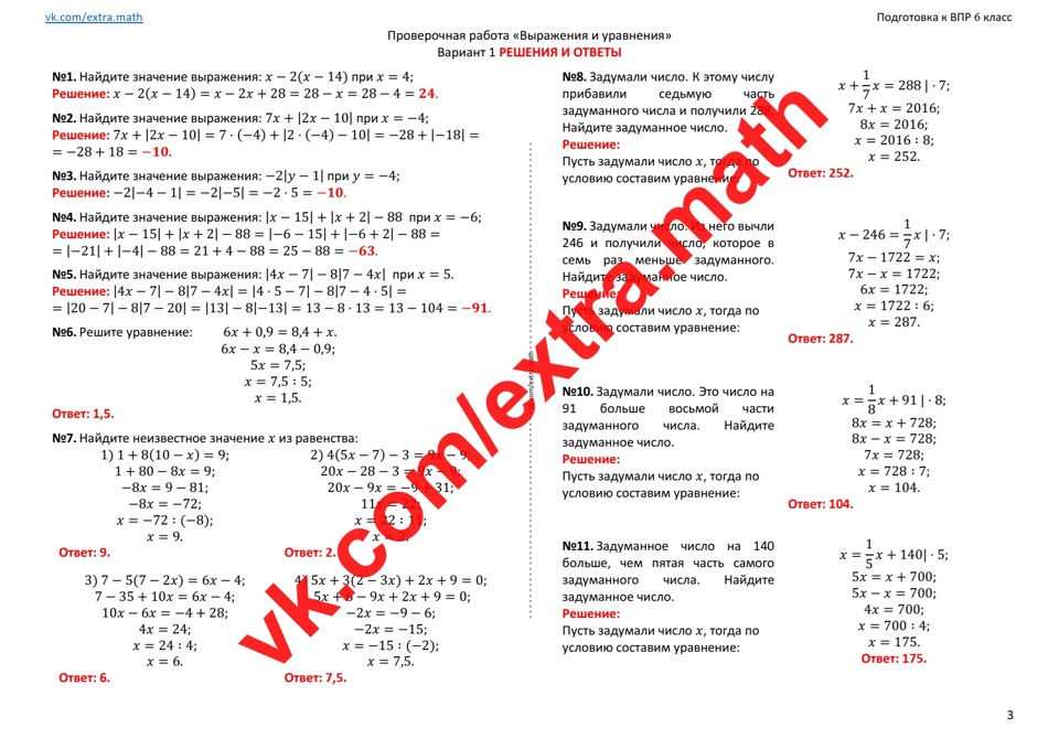 11.🆗ВПР 6 класс Проверочная работа "Выражения и уравнения"