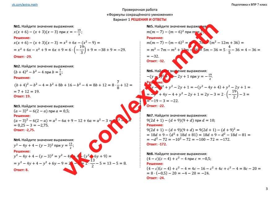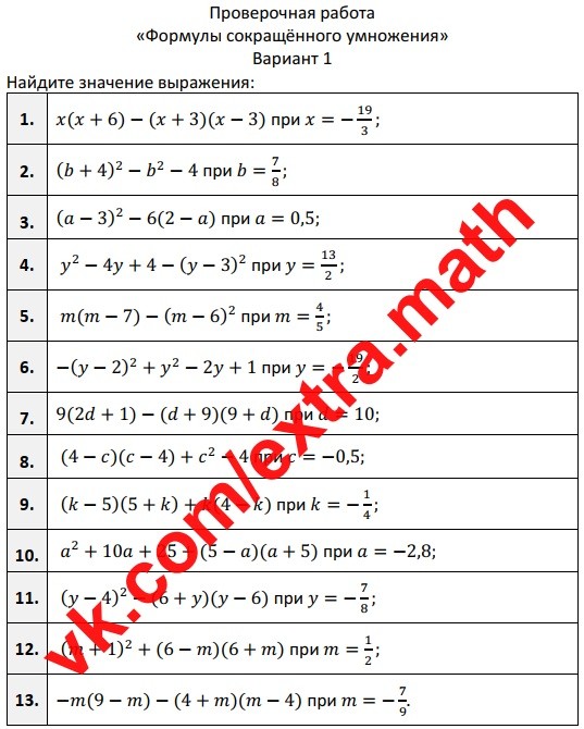 9.🆗ВПР 7 класс Проверочная работа "Формулы сокращенного умножения"