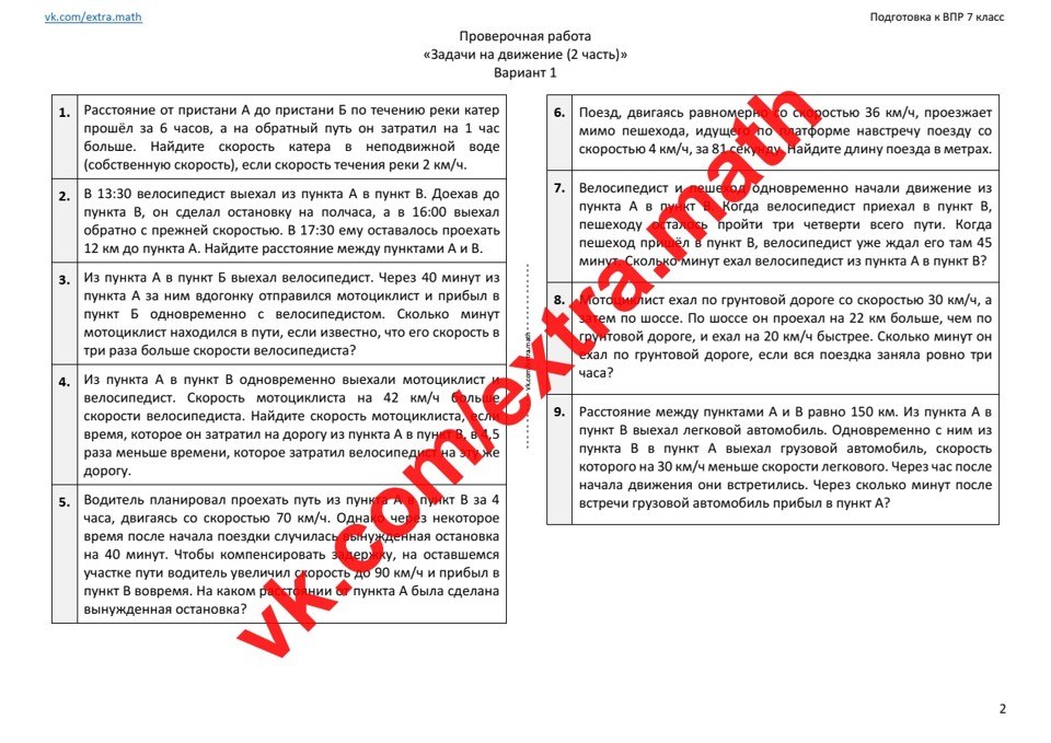 8.🆗ВПР 7 класс Проверочная работа "Задачи на движение (2 часть)"
