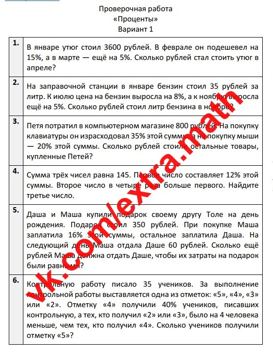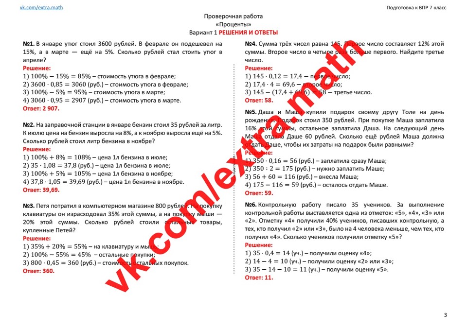 5.🆗ВПР 7 класс Проверочная работа "Проценты"