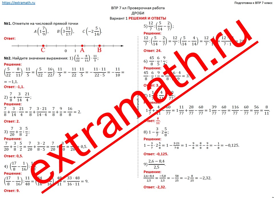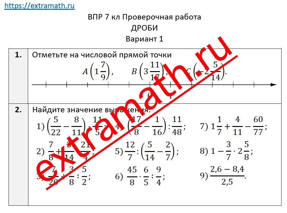 3.🆗ВПР 7 класс Проверочная работа "Дроби"