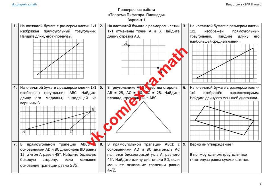 12.🆗ВПР 8 класс Проверочная работа "Теорема Пифагора. Площадь"
