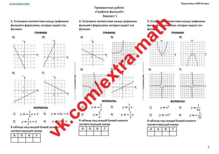 8.🆗ВПР 8 класс Проверочная работа "Графики функций"