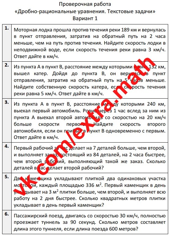5.🆗ВПР 8 класс Проверочная работа "Дробно-рациональные уравнения. Текстовые задачи"