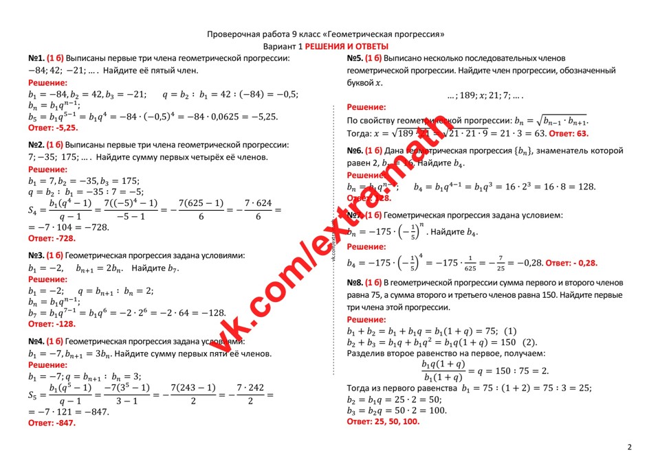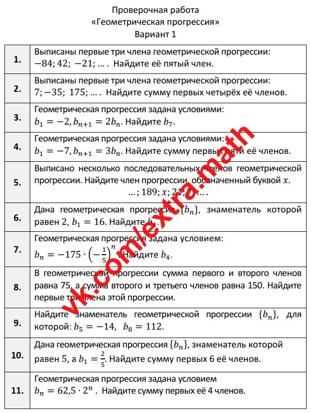 🆗 9 класс Алгебра Проверочная работа "Геометрическая прогрессия"