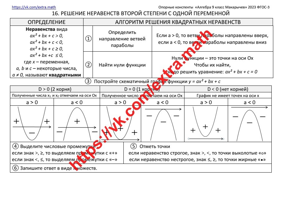 🔹 Опорные конспекты почти ко всем пунктам учебника "Алгебра 9".