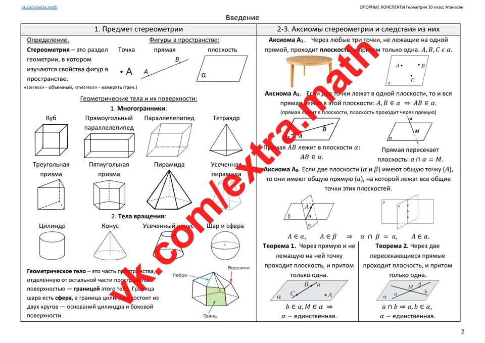 🆗Опорные конспекты к учебнику "Геометрия 10 класс" Атанасян Просвещение 2023 и позже.