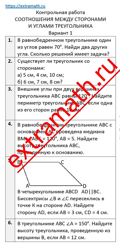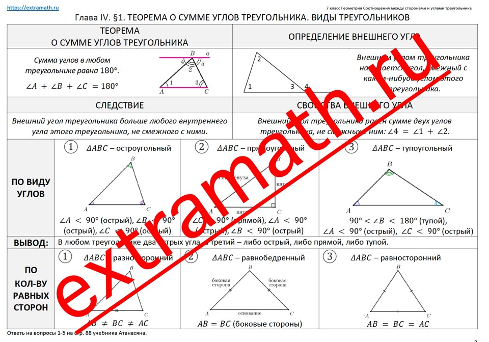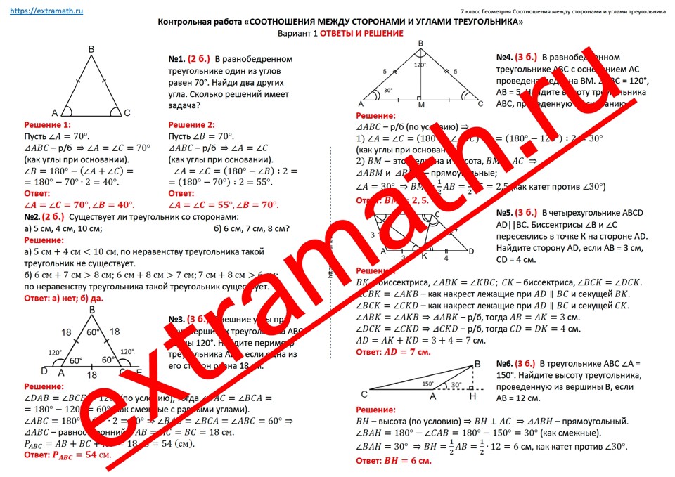 4.🆗7 класс Опорные конспекты + Самостоятельные работы + Контрольная работа "Соотношения между сторонами и углами треугольника"