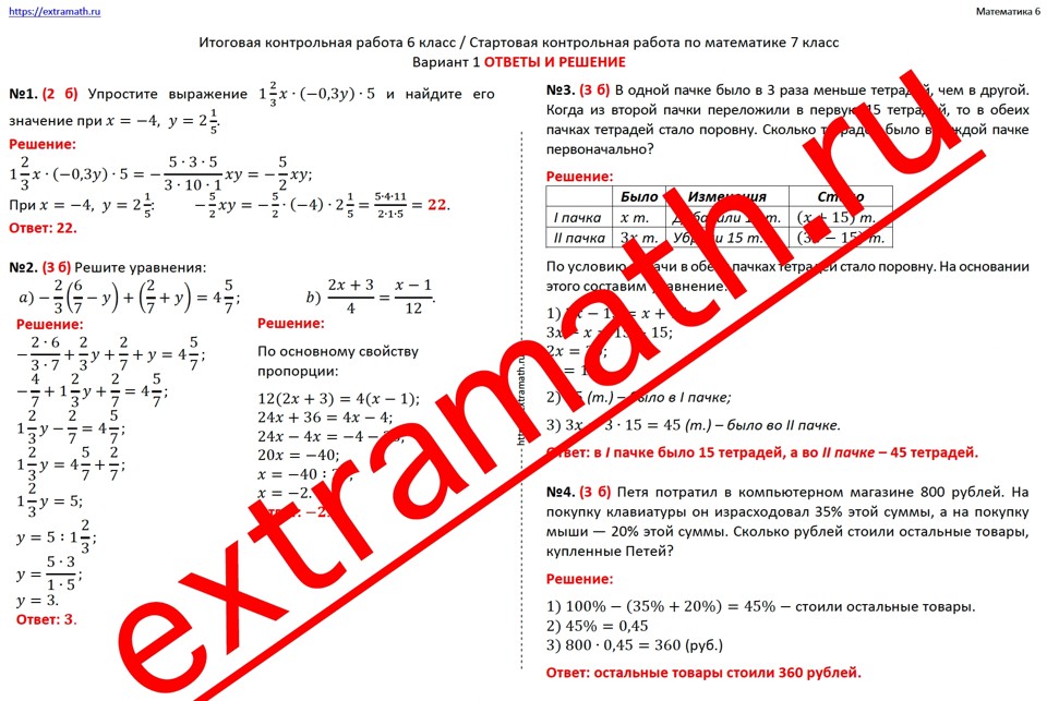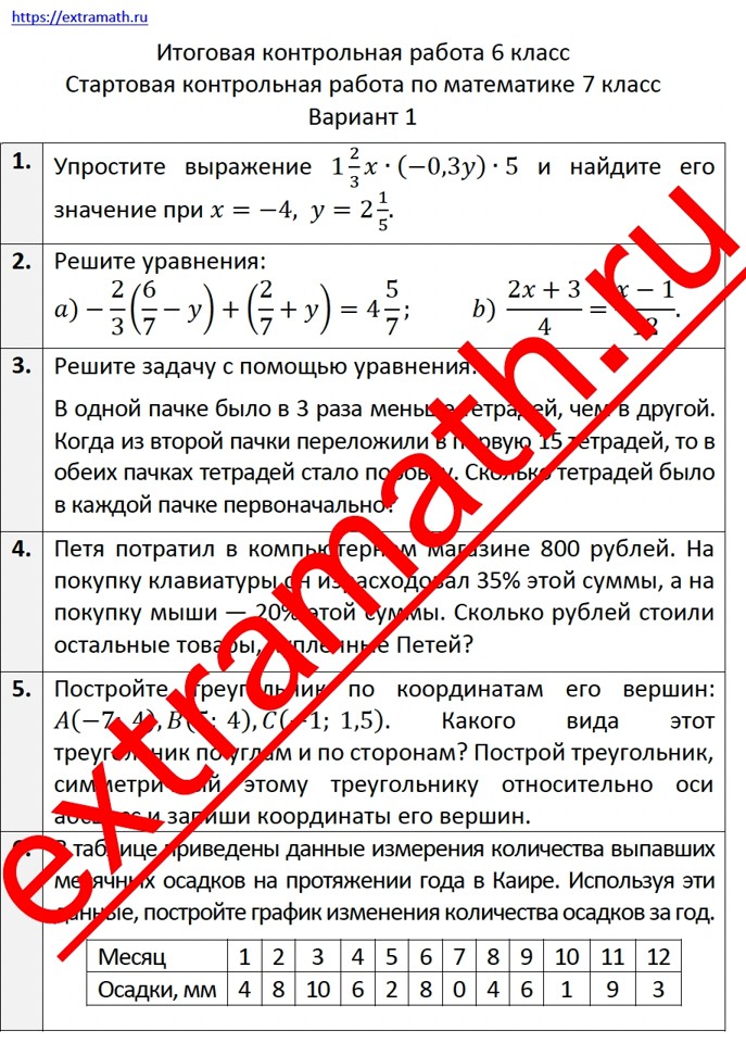 🆗6 класс Итоговая контрольная работа / Стартовая контрольная работа 7 класс
