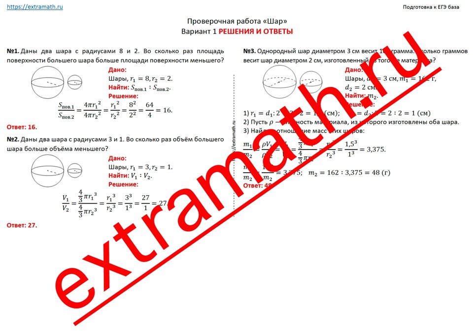 46.🆗 ЕГЭ база Проверочная работа «Шар»