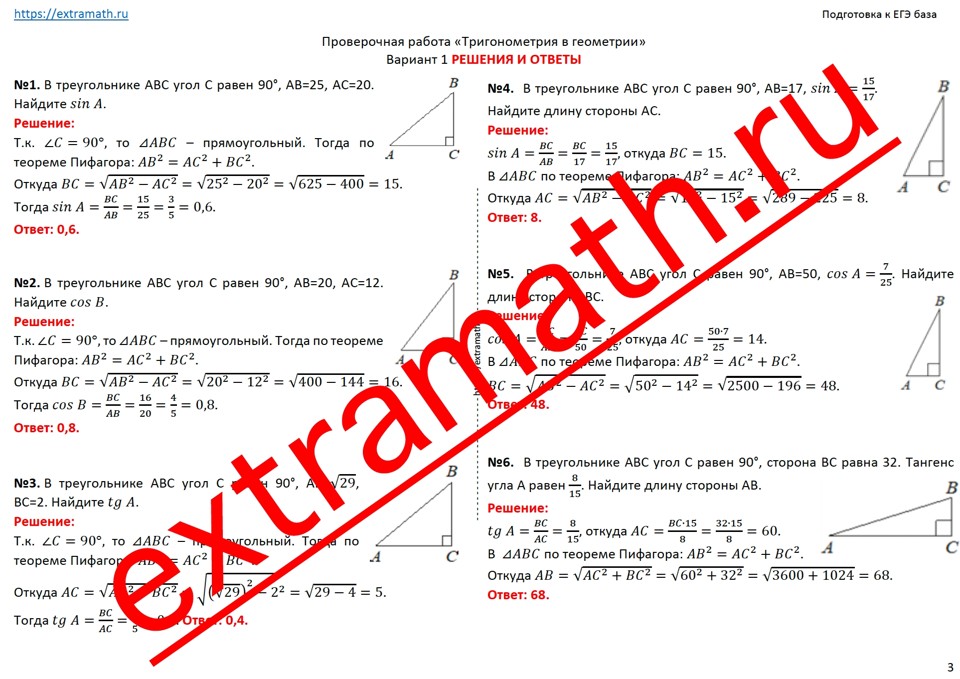 40.🆗 ЕГЭ база Проверочная работа "Тригонометрия в геометрии"