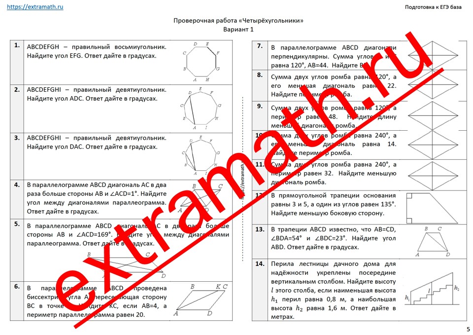 35.🆗 ЕГЭ база Проверочная работа "Четырехугольники"